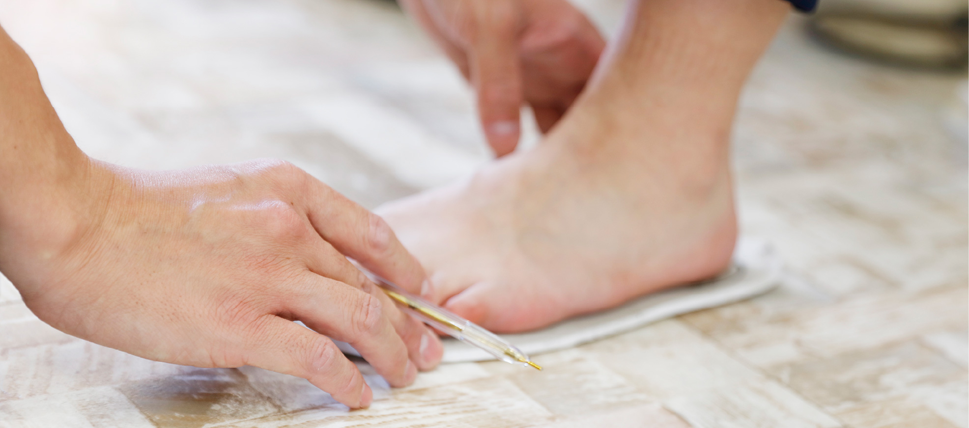従来の足形を採型し作成するインソールではなく、当院では理学療法士が運動学・解剖学の視点から個人の歩行特性を観察・分析しオーダーメイドのインソールを作成致します。