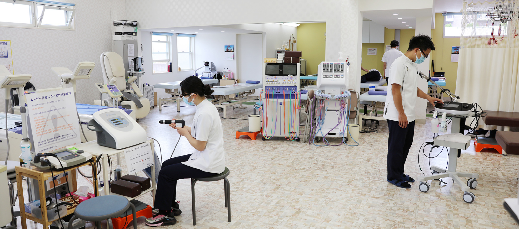 従来の温熱療法・電気療法に加えて、スポーツ障害に対応できる体外衝撃波、廃用性症候群を予防するG-TESなど最新の治療機器を随時導入し幅広い疾患に対応しています。